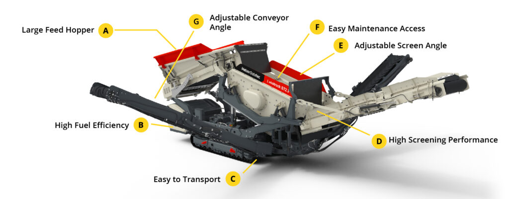 Equipped with a hydraulic screen lift and a spacious area beneath the screen, the ST2.3 facilitates straightforward maintenance, reducing downtime and simplifying routine servicing tasks.