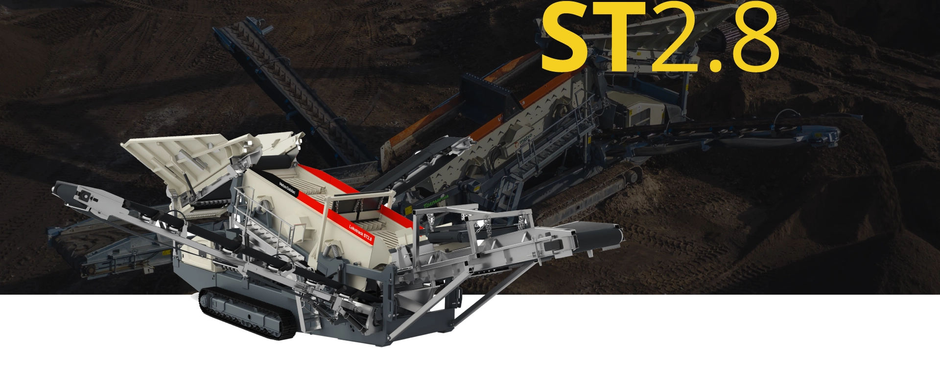 The Metso Lokotrack ST2.8 features a generously sized hopper with side wall extensions, designed to accommodate efficient loading by wheel loader or excavator, ensuring seamless material intake for high-volume processing in topsoil, sand, and aggregate applications.