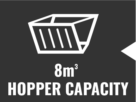 The wide feed box simplifies loading with a wheel loader and enhances efficiency in closed-circuit processing.