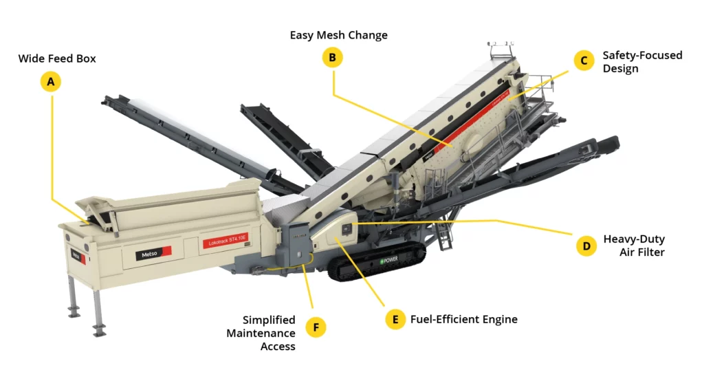 A hydraulic screen lift and generous clearance beneath the screen provide easy access for maintenance, reducing downtime and streamlining routine servicing.