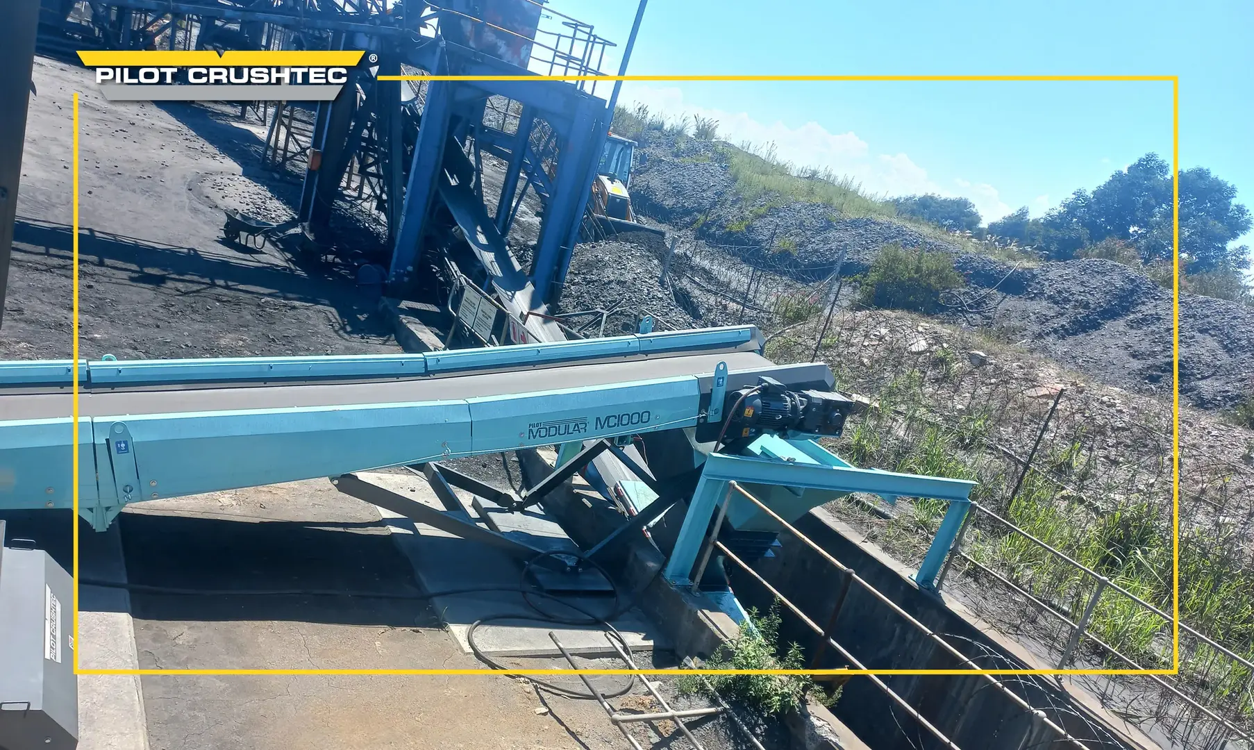 The MC1000 take-out conveyor is equipped with a 1000mm wide belt designed to handle large volumes of material such as aggregates and ore, ensuring high-capacity stockpiling and efficient transfer.