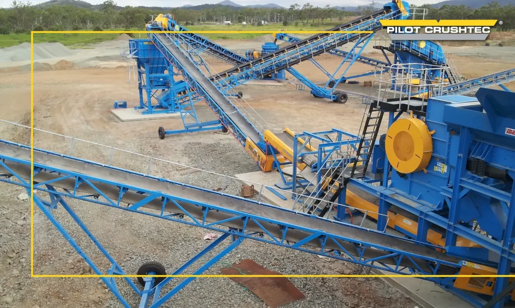 Designed for heavy-duty performance, the 1050mm wide belt efficiently handles high-volume loads of aggregates, ore, and construction waste, supporting both primary feed and stockpiling applications.