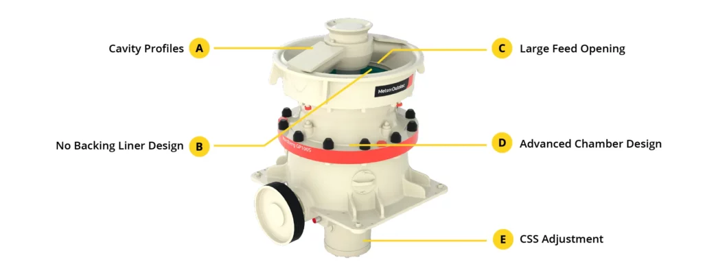 A wide range of cavity profiles designed for optimal performance, offering steep, high-capacity cavities that ensure efficient crushing of extra-coarse to extra-fine feed materials. These profiles, combined with adjustable stroke settings, provide trouble-free operation and high reduction ratios across varying feed conditions.